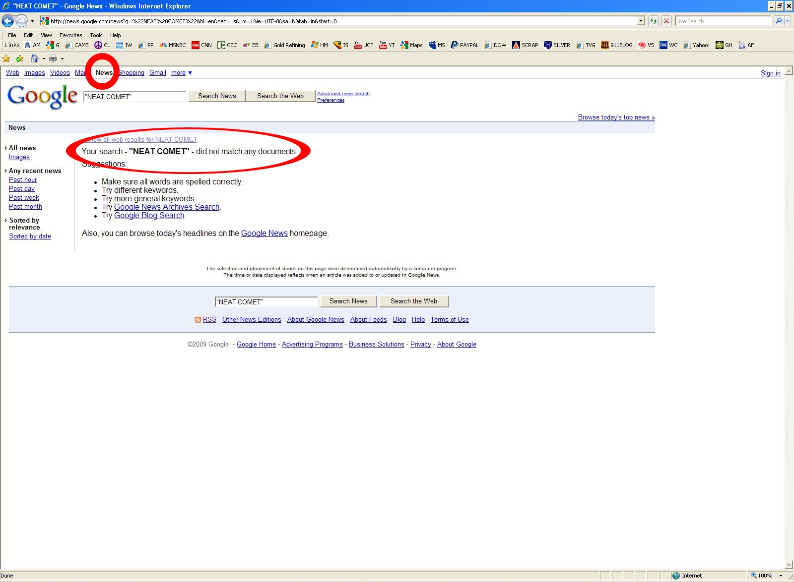 So... I decided to look for news articles on Google News about this so-called NEAT Comet. I was shocked to find 0 news stories about it on Google News. We know from Google Earth that Google and NASA are working together hand in hand.